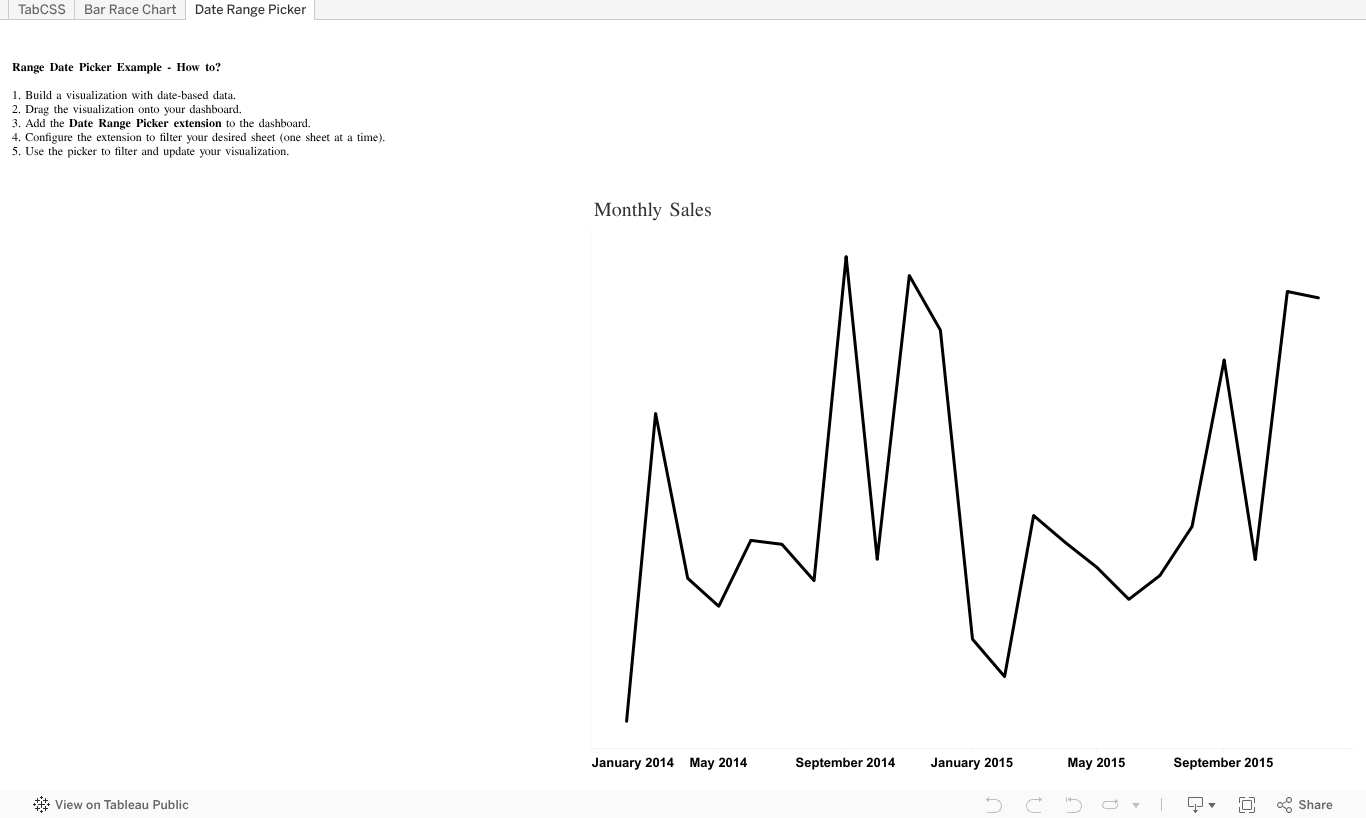 Ready to dive into the world of sandbox extensions? Below, you’ll find a series of simple examples to help you get started. Each example includes step-by-step instructions and a link to a Tableau Public workbook where you can explore the dashboard and see the extension in action.